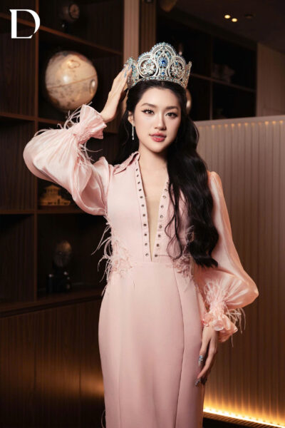 Điểm đặc biệt của thiết kế nằm ở sự cân bằng giữa nét dịu dàng và thần thái nổi bật. Phần tay áo phồng nhẹ kết hợp chi tiết lông vũ ở tay và chân váy tạo nên cảm giác mềm mại, bay bổng hơn cho tổng thể. Khi đồng hành cùng Phan Phương Oanh, bộ trang phục không chỉ tôn lên vẻ đẹp nữ tính, hiện đại mà còn góp phần khắc họa hình ảnh một Miss World Vietnam 2025 thanh lịch, nổi bật và đầy sức hút.
