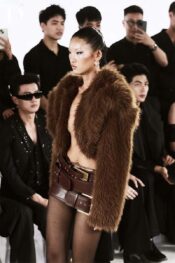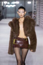 The loosely draped fur coat added effortless movement with intentional flow, while the short dress paired with a wide belt defined the waist and sharpened the overall silhouette.